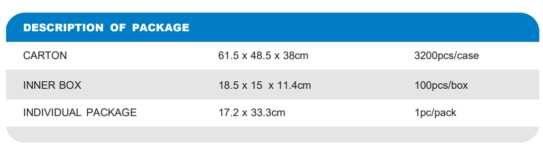 Packing: 1 Piece per Pack, 100 Pieces per Box, 32 Boxes per Carton